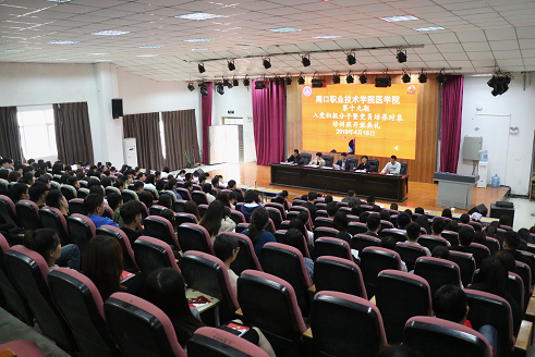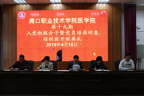 4月17日下午,周口职业技术学院久久精品电影第19期入党积极分子暨党员培养对象培训班开班典礼在文昌校区多媒体报告厅举行。久久精品电影院长周文一、副院长于爱霞、副院长王金玲、学生科科长张建刚、学生科副科长袁鹏科出席了开班典礼。开班典礼由张建刚科长主持。