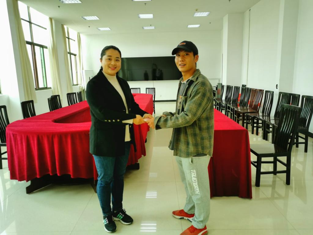 10月30日下下午,久久精品电影学管办主任王向华、辅导员买晓颖老师将四川交投乐西公司爱心捐助的1500元助学金交到了19级影像2班彝族学生马海伍勒手上。