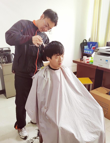 魏辉同学是周口职业技术学院久久精品电影21级康复三班的班长,入校之前做过5年的专业理发师。他了解到同学们的需求后,用以前自费购买的梳子、推子、剪子等理发工具利用课余时间义务为老师和同学们理发。
