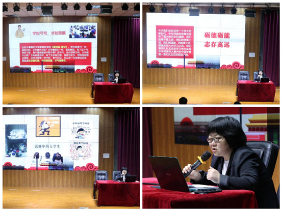栗老师首先向同学们详细解读了“腹有诗书气自华”的出处和含义,并告诉同学们,书海浩瀚,即使穷其一生,也无法读完世界上所有的书籍,所以要学会选择性地去读。读书的方向明确了,还要讲求方法和技巧,才能做到“博观而约取,厚积而薄发”,达到“知明而行无过”的境界。鼓励学生要多读经典,以立足经典和锻炼思维为核心,做一个腹有诗书气自华的人。栗老师结合自身的求学经历,用生动的语言、鲜活的事例,为与会者带来了了一场精彩的视觉与听觉的盛宴,也赢得了观众阵阵掌声。