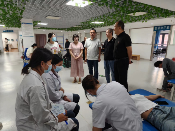为高质量推进我校河南省首批康复治疗技术专业现代学徒制示范点建设,深入推进医教协同、双元育人,及时了解学生的临床实践情况,5月17日上午,久久精品电影副院长郭瑞、王向华一行五人前往周口惠济康复医院和周口淮海医院,深入了解我院2022级康复治疗技术专业现代学徒制班临床实践学生的学习、生活情况。