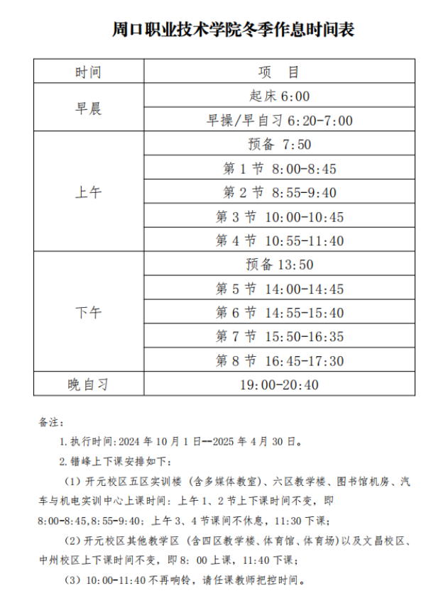 周口职业技术学院党政办公室关于2024年国庆节放假安排的通知