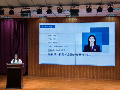 21级影像1班学生魏敬连续两年获得国家奖学金,报告会上,该同学以《行是知之始,知是行之成》为主题,从大学以来的学业成果、工作成绩、课外活动、总结与展望等方面分享了自己的学习经历。21级药学2班张刘浩同学以《不懈奋斗,逐梦前行》为主题和大家分享自己的学习经历,他学习努力刻苦,工作认真负责,始终严格要求自己,在学校积极参加各类竞赛,在班级起到了很好的模范带头作用。