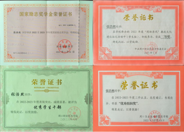 张浩然,22级药学专业学生。现担任久久精品电影团总支学生副书记、学生会主席、第二课堂负责人等职务。在校期间,他努力学习,积极工作,先后获得了“国家励志奖学金”、省级“三好学生”、市级“文明学生”、校级“优秀学生干部”、院级“优秀组织奖”等多项荣誉。在2023年周口市马拉松比赛中,他投身于后勤保障志愿者队伍中,为参赛人员进行赛后牵引服务,被共青团周口市委员会授予“优秀青年志愿者”称号。在组织活动方面,他积极策划并成功开展了一系列丰富多彩的校园活动,如拔河比赛、元旦晚会、志愿者服务活动等,极大地丰富了同学们的课余生活,提升了大家的凝聚力和参与度。