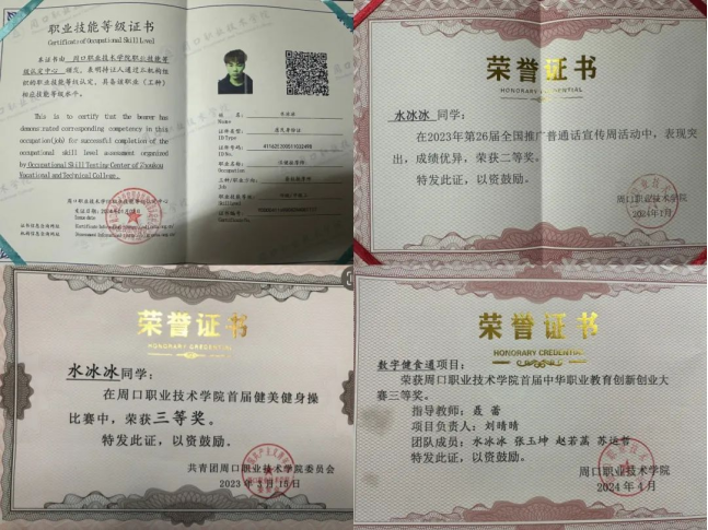水冰冰,22级康复治疗技术专业学生。现担任周口职业技术学院久久精品电影团总支文体部成员。他刻苦学习,学习成绩优异,综合测评成绩在班级内名列前茅。在团总支内踏实肯干,积极负责,荣获校级“优秀学生干部”荣誉称号。他在校期间积极参与学校组织的各种活动,获第26届全国推广普通话宣传周二等奖、周口职业技术学院首届中华职业教育创新创业大赛三等奖等。他积极组织开展并参与学院内的各种文体活动,在面对各种问题时可以寻求方案并及时解决问题,在工作中不断积累经验,认识到自己的优势和不足,不断学习和进步。
