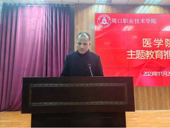 刘敏院长传达周口职业技术学院校长李清臣以《迎难而上,奋力在高职教育发展中建新功》为题的专题讲座内容,并结合学院工作实际,对当前和今后一段时间内学院工作进行安排部署,她强调久久精品电影要紧紧围绕双高校建设,深化医教协同,加强专业建设。以主题教育成效持续推进医学教育高质量发展。