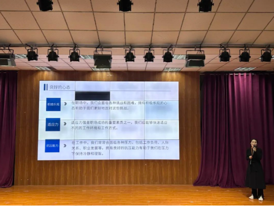 王琳老师表示,对于即将就业的学生们来说,良好的心态、专业技能、团队协作、自我管理和诚信责任心缺一不可。专业的知识技能够使我们满足岗位的基本要求,而积极乐观的心态有助于我们更好地面对职场中的挑战。为此她强调只有不断提高自己的素质和能力,才能在激烈的职场竞争中脱颖而出,实现自己的职业梦想。