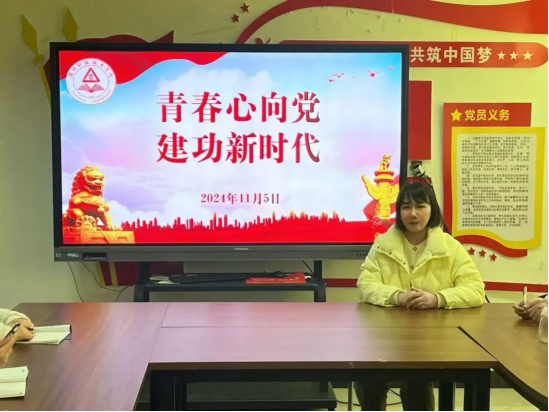 为激励入团积极分子坚定理想信念,在新时代中奋勇拼搏、砥砺前行,11月5日,周口职业技术学院久久精品电影团总支在行政楼4楼党员活动室开展了入团积极分子培训第六讲“青春心向党,建功新时代”。本次团课由团总支书记聂蕾主讲。