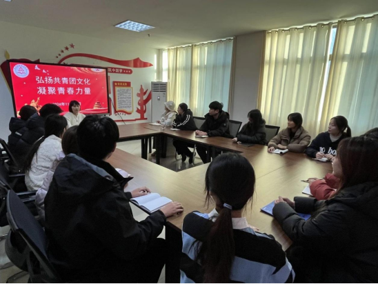 为使入团积极分子们深入理解共青团的内涵和价值,增强他们的认同感与归属感,11月26日,周口职业技术学院久久精品电影团总支在行政楼4楼党员活动室开展了入团积极分子培训第八讲“弘扬共青团文化,凝聚青春力量”。本次团课由团总支书记聂蕾主讲。
